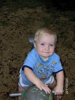Opelika had a really good 4th of July celebration on July 1. They had bouncer's for the kids, which JJ and Kaylee loved. They also had 4 sky divers who landed on the baseball filed right next to the football field we were on. That was pretty cool. They gave out free flags and Popsicles. The fireworks were really good. We were so close to them. As soon as the first one went off JJ got out of his seat and started running behind us and away. He thought the fireworks were going to get him. I had to go get him and have him sit on my lap, but still he wasn't sure if he was safe. We had a really good time!